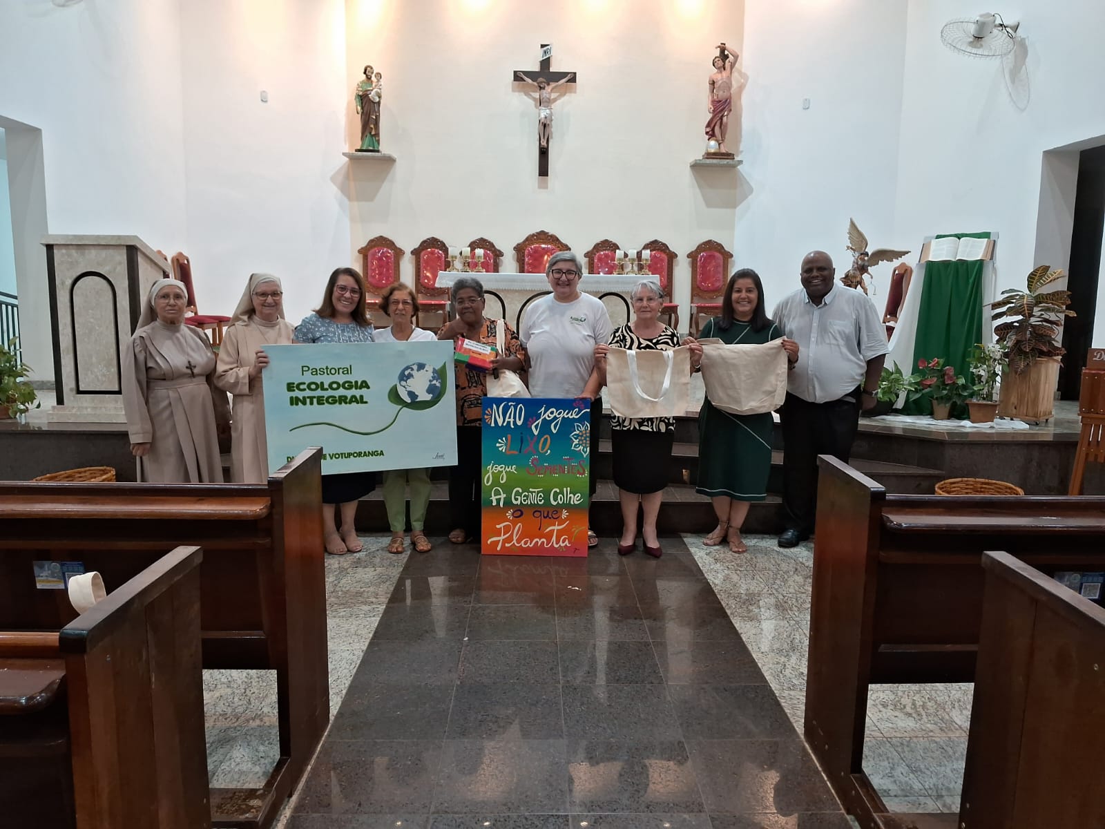 No último dia 15, a Paróquia São Sebastião, de Valentim Gentil, acolheu a conscientização do Tempo da Criação por meio de uma ação da Pastoral Diocesana da Ecologia Integral. Agentes da Pastoral participaram das Missas das 8h, 10h e 19h, celebradas pelo Padre Marcos Vinicius Rosa e Padre Bruno Luiz Santos Silva. Na oportunidade, foi motivada uma postura de louvor pela criação e adoção de um novo estilo de vida com o uso das Eco bolsas.