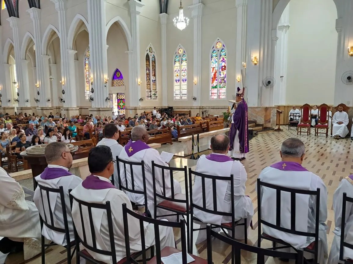 Nesta manhã, Dom Moacir Aparecido de Freitas presidiu a Celebração Eucarística da Quarta-Feira de Cinzas, marcando o início do Tempo Quaresmal e a abertura da Campanha da Fraternidade.