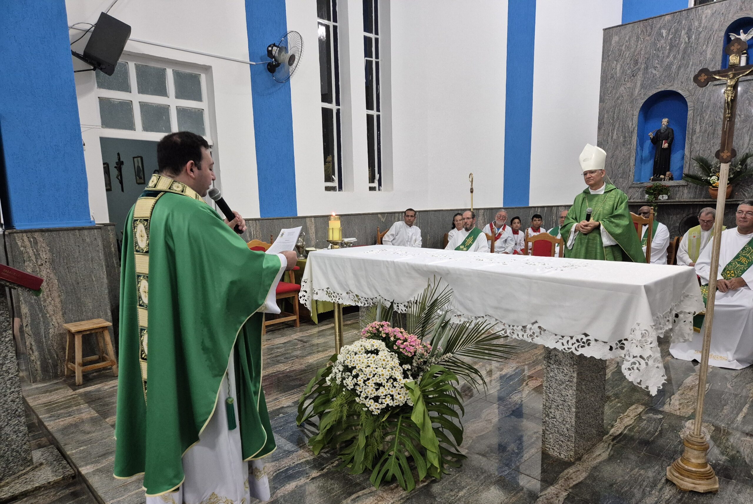 Na quinta-feira, 26 de setembro, Dom Moacir Aparecido de Freitas, presidiu a Missa na Paróquia Divino Espírito Santo, de Planalto, para apresentar o novo administrador da comunidade, Padre Ancelmo José Lio. A celebração reuniu Padres, Diáconos, religiosas e fiéis da cidade, do movimento das Equipes de Nossa Senhora e representantes de Votuporanga.