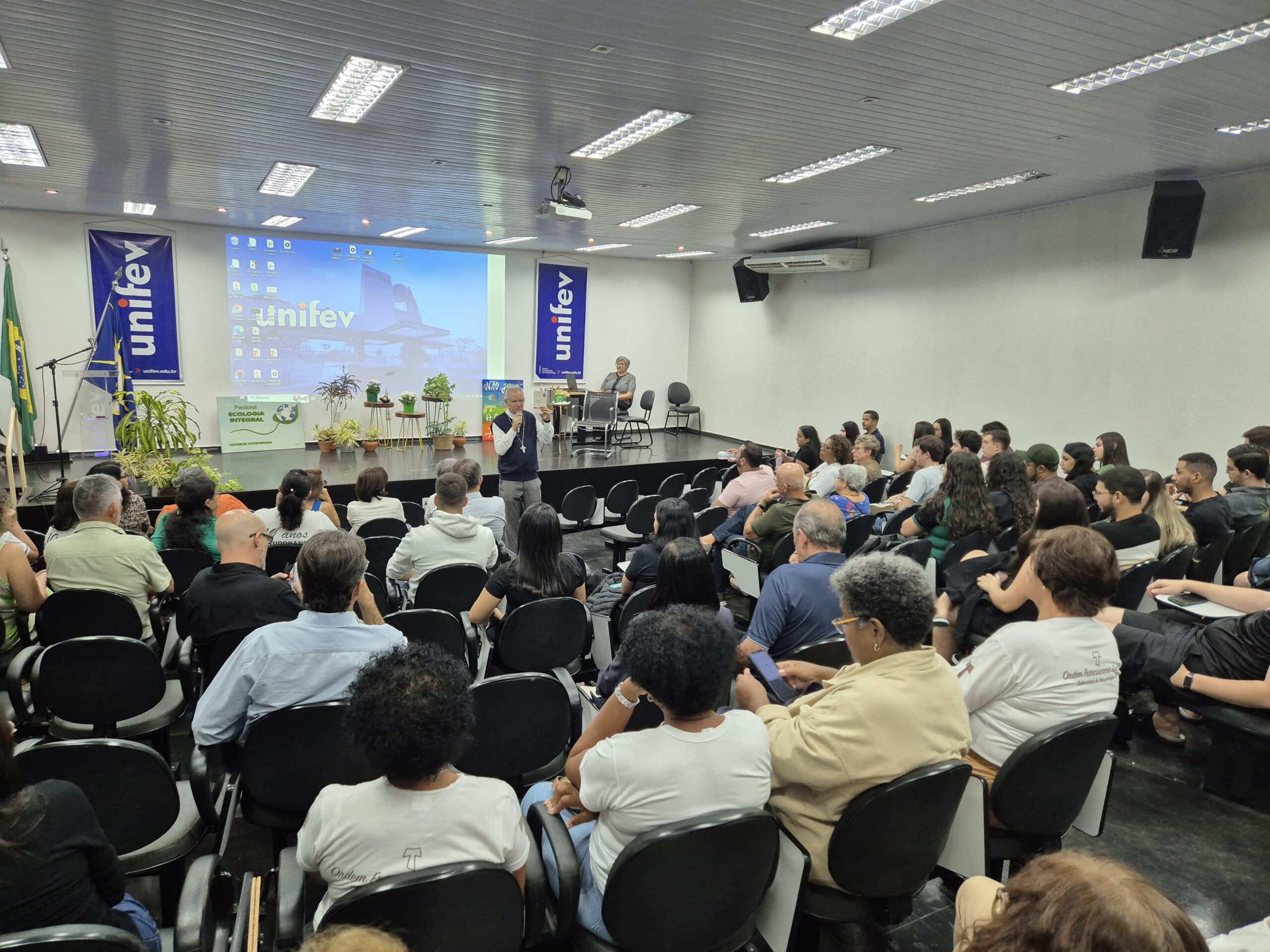 Na noite dessa segunda-feira, 19 de maio, foi realizado o primeiro dia do Seminário de Ecologia Integral, com o tema: “Crise climática e suas interferências no bem viver”, no auditório da Cidade Universitária da Unifev, em Votuporanga. O encontro reuniu fiéis, educadores, agentes pastorais e representantes da sociedade civil para refletir sobre a importância do uso consciente da água e dos cuidados com o descarte do lixo, em sintonia com os princípios da ecologia integral.