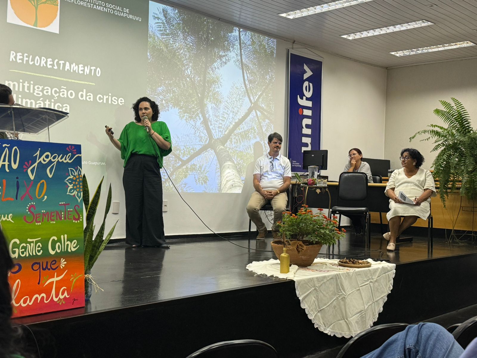 O Simpósio aconteceu na Cidade Universitária e refletiu sobre as causas e consequências da crise ecológica (hídrica e resíduo sólido), reflorestamento e os benefícios diante da crise ecológica e práticas que podem gerar a cultura do cuidado. O conteúdo foi refletido pela assessora Diocesana da Pastoral da Ecologia Integral, Irmã Magali Gavazzoni e os profissionais Dr. Denilson Carmo Bertolaia, Ma. Giseli Moretti Oliveira e Eva Maria Teodoro Ferreira. O Diácono Ancelmo José Lio conduziu a mediação do evento, quanto à abertura contou com a presença do reitor da UNIFEV, Prof. Dr. Osvaldo Gastaldon; da coordenadora Diocesana da Pastoral da Ecologia Integral, Marilda Isac e o Padre Gilmar Antônio Fernandes Margotto, da Catedral Nossa Senhora Aparecida.